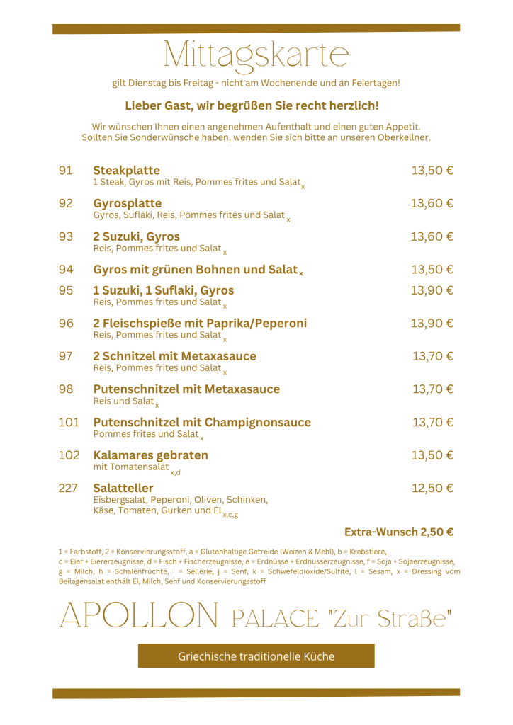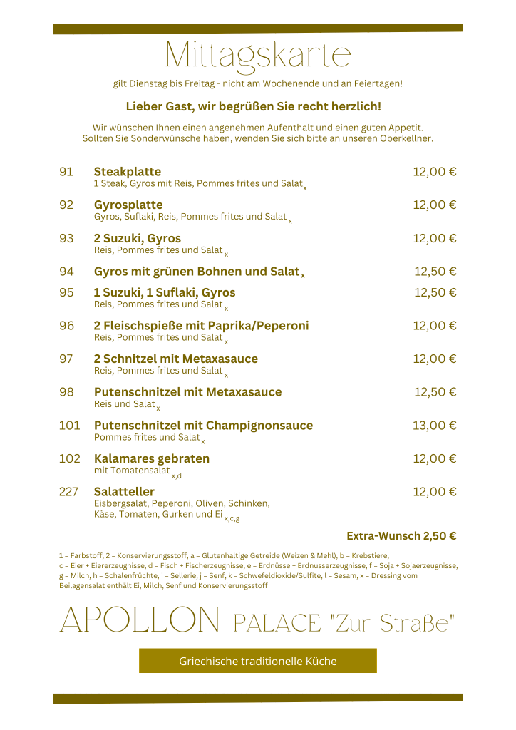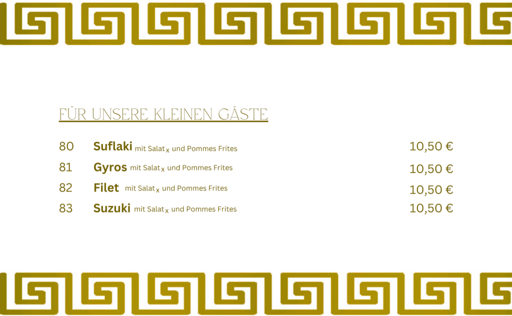 Bei uns erwartet Sie ein kulinarisches Erlebnis voller mediterraner Aromen und echter griechischer Gastfreundschaft. Unsere Küche basiert auf traditionellen griechischen Rezepten, die wir mit frischen, hochwertigen Zutaten und viel Liebe zum Detail täglich für Sie zubereiten. Ob saftiges Souvlaki, würziges Gyros, frische Salaten oder fein gewürzte Fischgerichte – jedes Gericht bringt Ihnen ein Stück Griechenland auf den Teller.